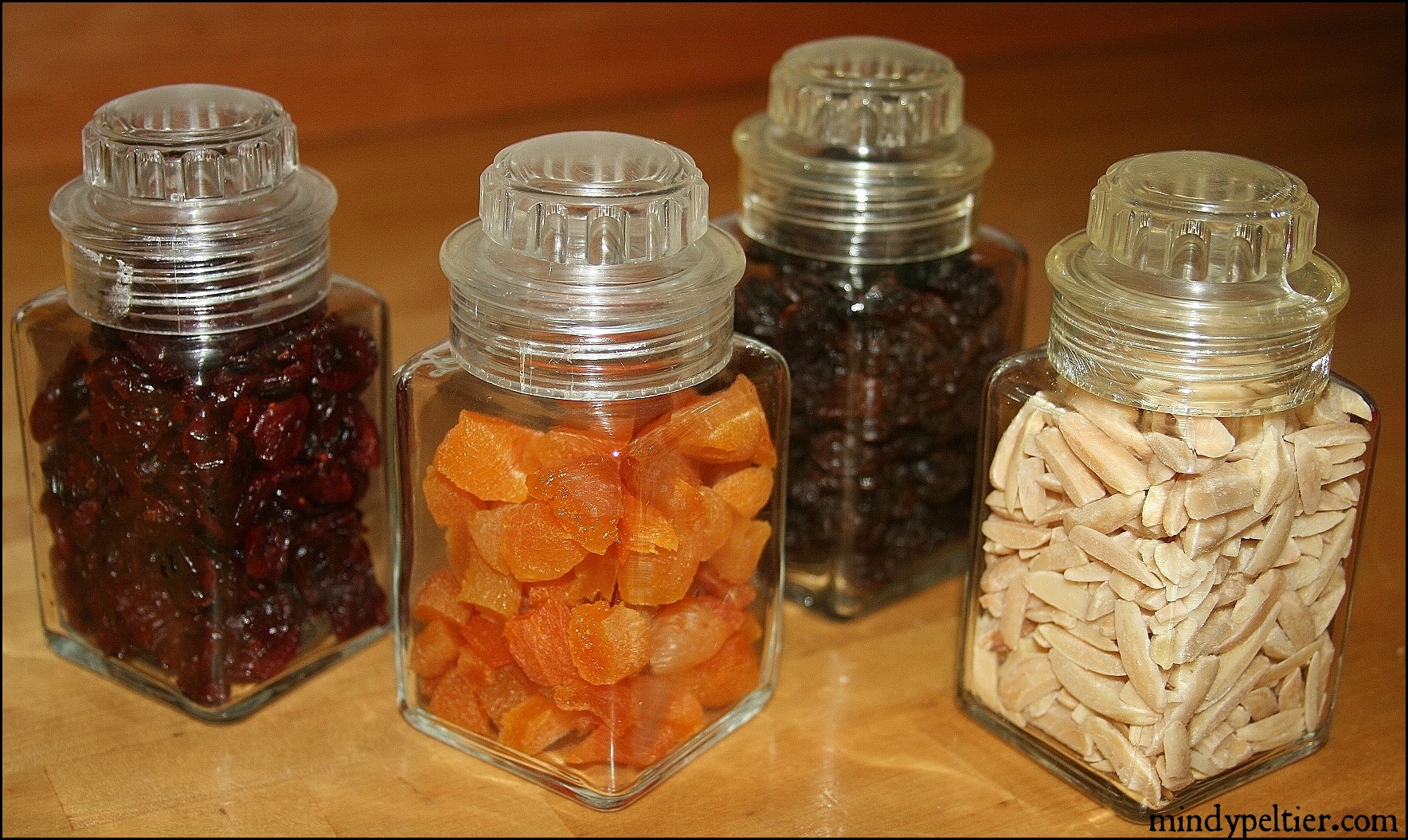 (L to R) I have dried cranberries, dried apricots, raisins, and slivered almonds.